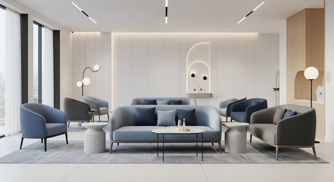 Modern commercial seating and interior upholstery crafted for waiting areas and professional spaces, combining durability, comfort, and a refined look.